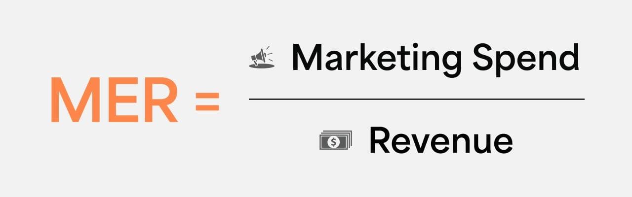 Calculate MER by dividing total revenue by total marketing spend. For example, if monthly revenue is $250,000 and marketing spend is $10,000, your MER is 25.0 ($250,000/$10,000 = 25.0).