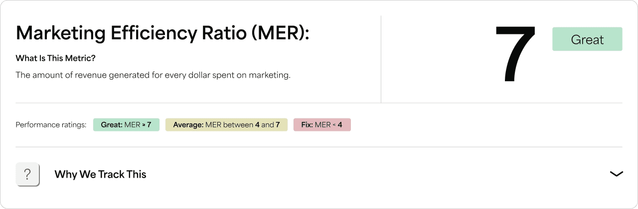 Track MER monthly to identify trends and adjust strategies. Also, calculate quarterly and annual MER to account for seasonal variations and long-term marketing investments.