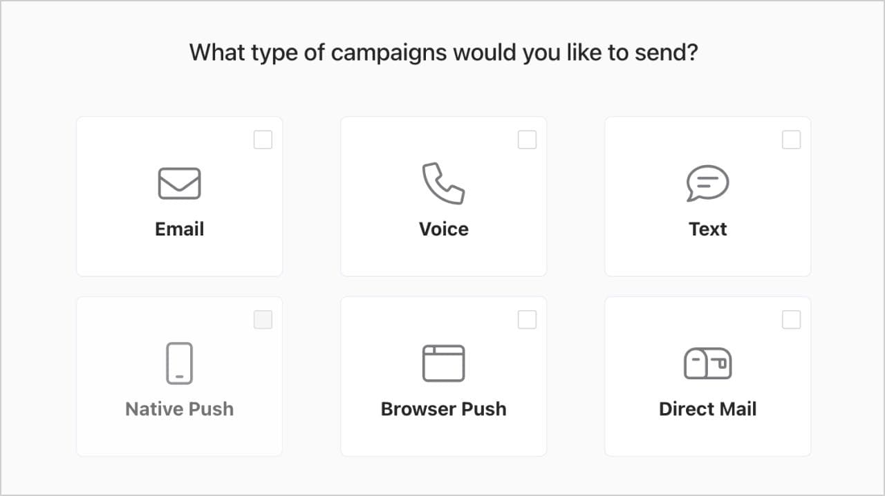 Alpine IQ's campaign builder offers numerous channels to engage subscribers
