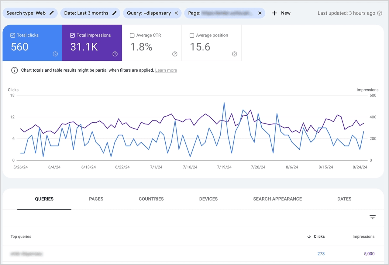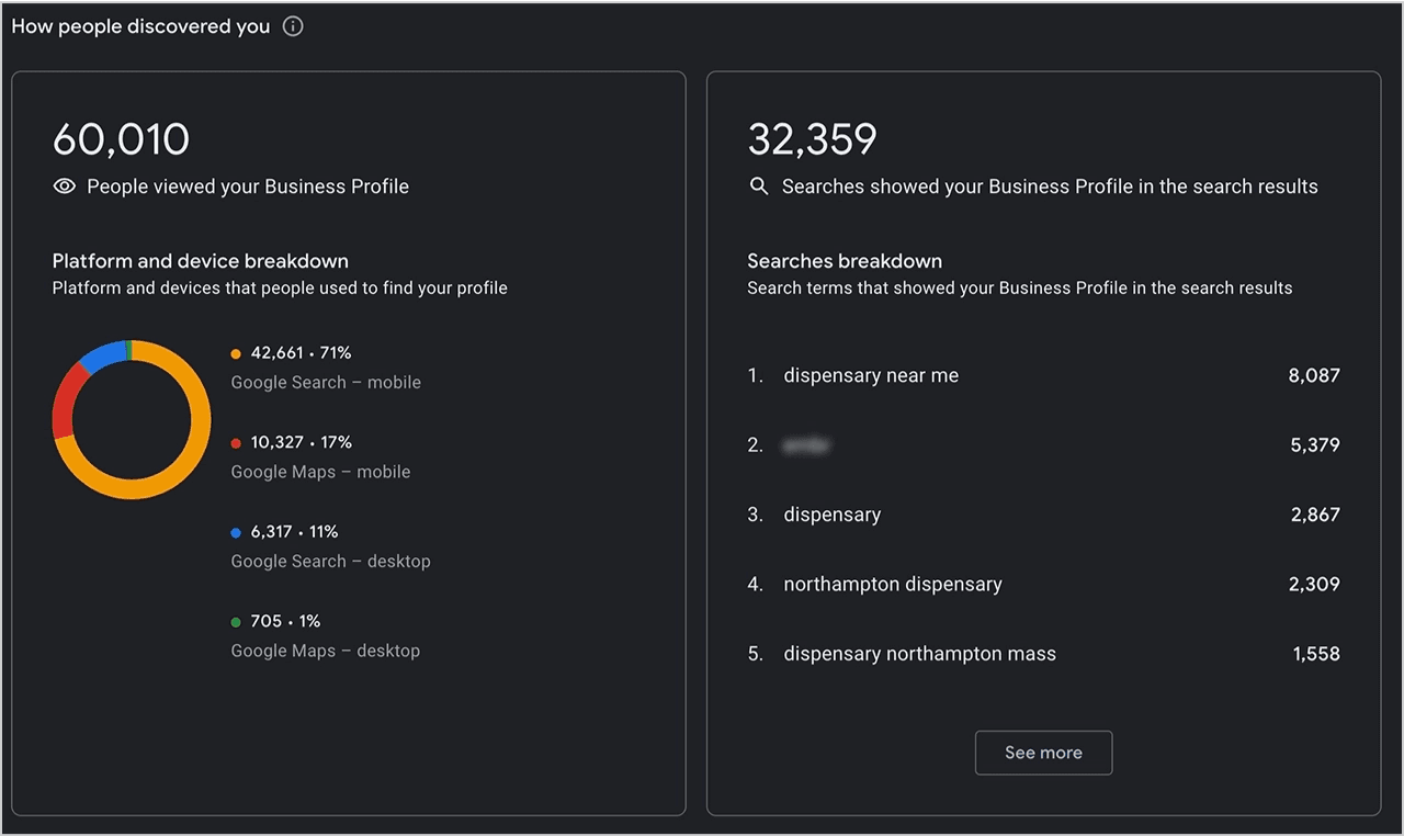 Our data from clients across 17 different markets consistently shows dispensaries that nail their keyword strategy and map content effectively see the best results: