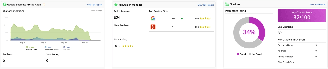 - Local SEO tools like BrightLocal for Local Search Grid and Rank Tracker