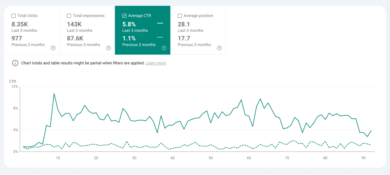 Your click-through rate is the percentage of users who click on your search result after seeing it.