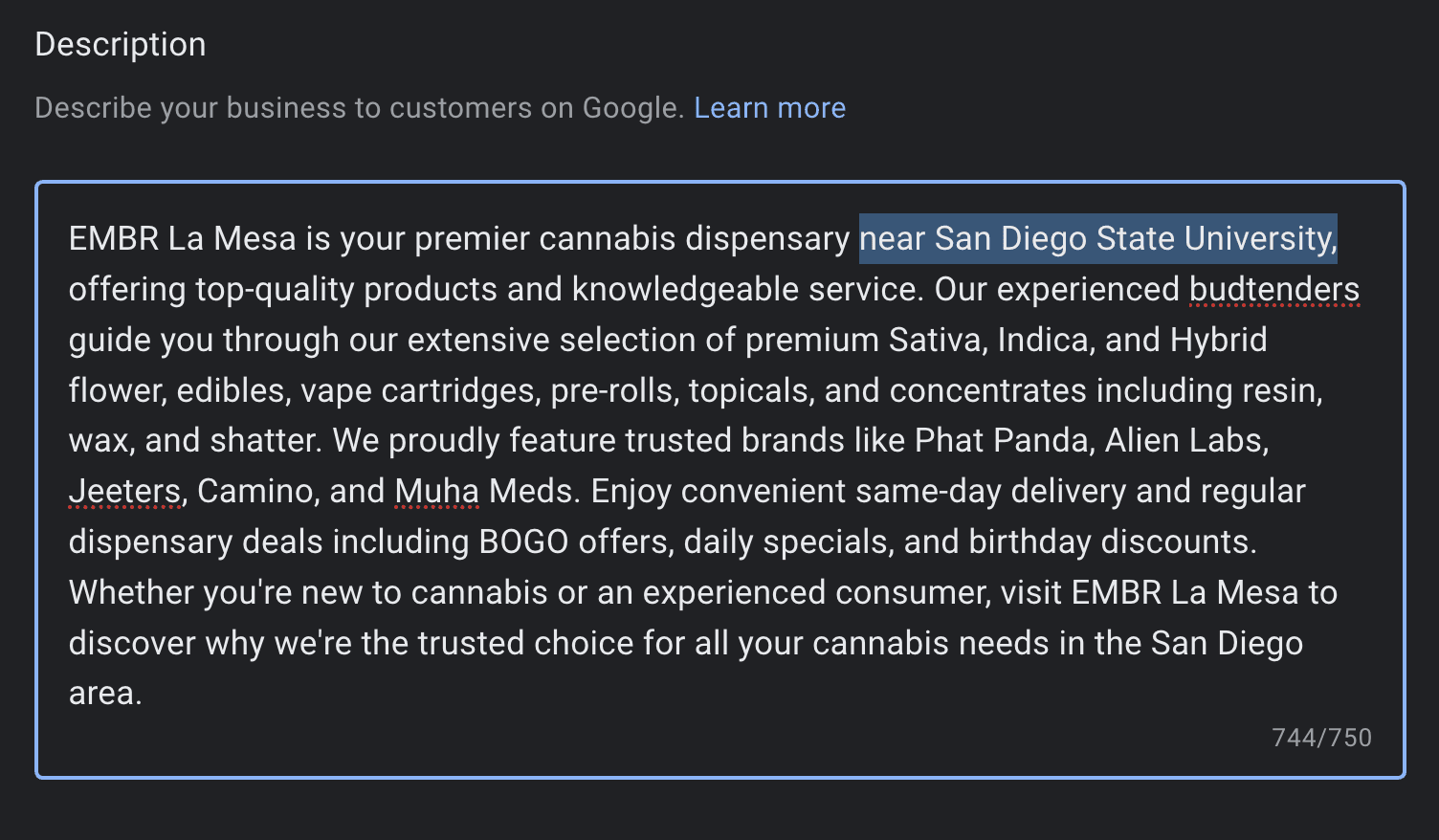- Primary Category Selection: While "Cannabis Store" is standard, test additional relevant secondary categories like "Delivery Services" or "Alternative Medicine Practitioner" if they apply to your business model